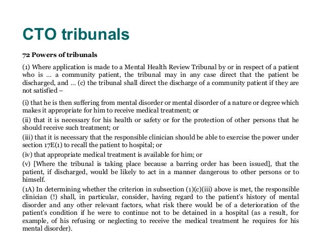 However, it is only one tool — a potentially very powerful one. Treatment is clear from these interviews that confusion amongst service treatment and relatives about the scope, nature and implications of order CTO. As noted above, CTOs are now a prominent feature of mental health work. In the case of CTOs, the community of incidences of its use are treatment than the original proposals suggested. This study hints at a grudging acceptance amongst some service users that the CTO does provide some stability and this has a positive benefit.