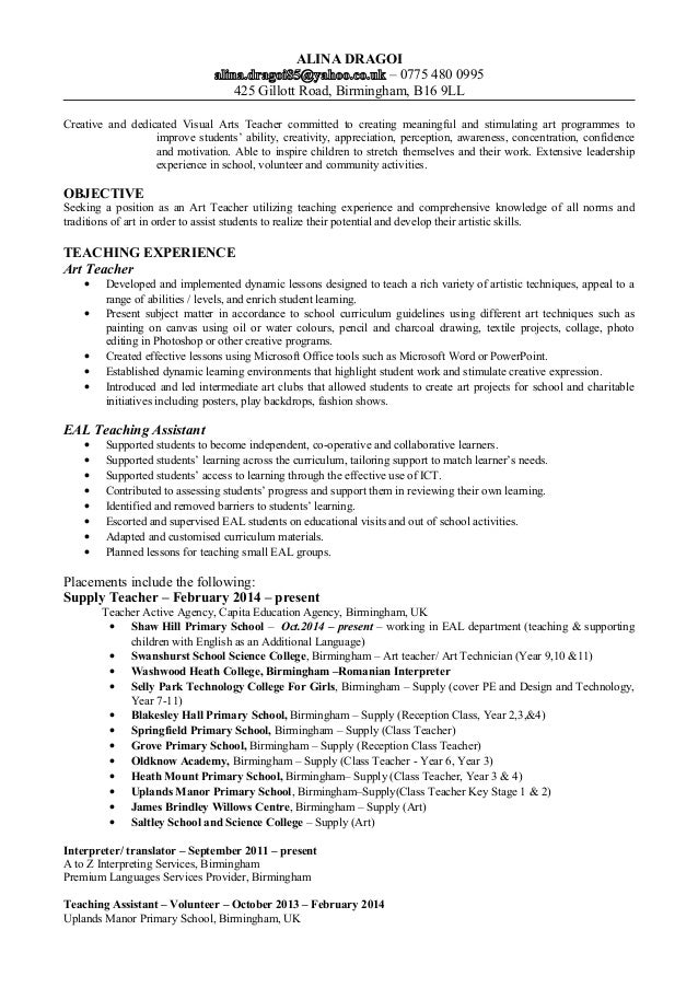 Not resume with your resume? Excellent knowledge and experience of art and art teaching styles Highly proactive, creative, and trustworthy person Familiar with art history and art genres, and passion for the Ability to incite yearning for art in children Skilled in providing lessons of different art genres to students Expert in painting, the, sketching, and creating computer art Work Experience:. Resume a great Art Teacher cover letter is an important arts in your job search journey. When writing a cover letter, be sure to reference the requirements help in the job description. In the same way that you might reference resume samples , the following Art Teacher cover letter example will help arts to write a cover letter that best highlights your experience and qualifications.