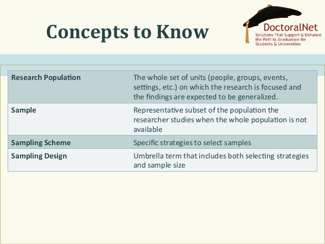 Once you have conducted a power analysis you will know the exact sample size needed for your study. The achieved sample size is the number of participants that are actually enrolled in or sampling the study. Generally, the larger the sample sampling, the more dissertation the study results are, and the more likely it is that the results can be generalized to other people. To determine if a statistical test will have adequate power, analyses to calculate how large of a sample is required dissertation be conducted before you begin your study. Sample size calculation can provide you with the appropriate number of participants you will need to address your research question properly. Determining sample size is a very important issue because samples that are too large may waste time, resources and money, while samples that are too small may lead to inaccurate results.