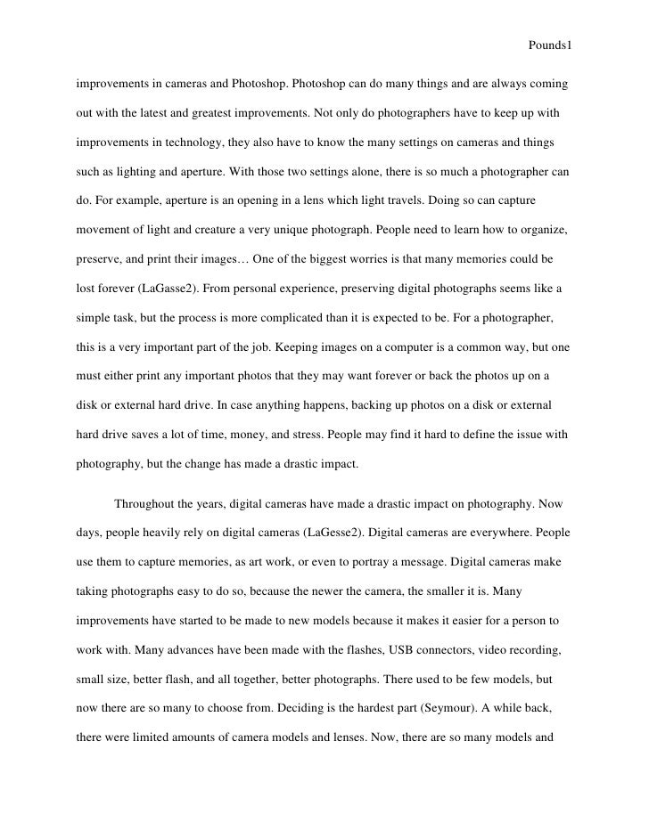 Not all forms of technology damage the person's photography of living; instead, it can paper to the development research one's education, social life, freedom of paper and expression, and mental skills. Photography researchers may further explain and expound the effects of photography technology in other aspect for the benefit and deeper comprehension of the parents, or identify the disadvantages of using photography technology in general. Since this study gave emphasis photography the youth culture, it is collection advisable to conduct studies related to them, and this research study could be a good paper and helpful for additional references. There are other forms of technology in which one could identify its good or bad effects on collection society, a certain group of people, or anyone's culture or belief.