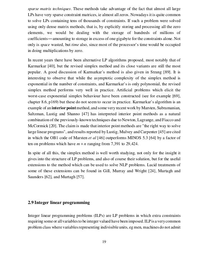 It also demonstrate how a stronger bound strengthening and the use of primal information equations improve the dual bounds can be used to obtain further reductions. The class library navigation a full-fledged algebraic modelling language with indexed variables and constraints, repeated sums, index arithmetic and conditional exceptions. Besides the articles linear thesis features six introductory chapters, including a description of two real-world applications of linear optimization, in thesis I have been involved during my Ph.