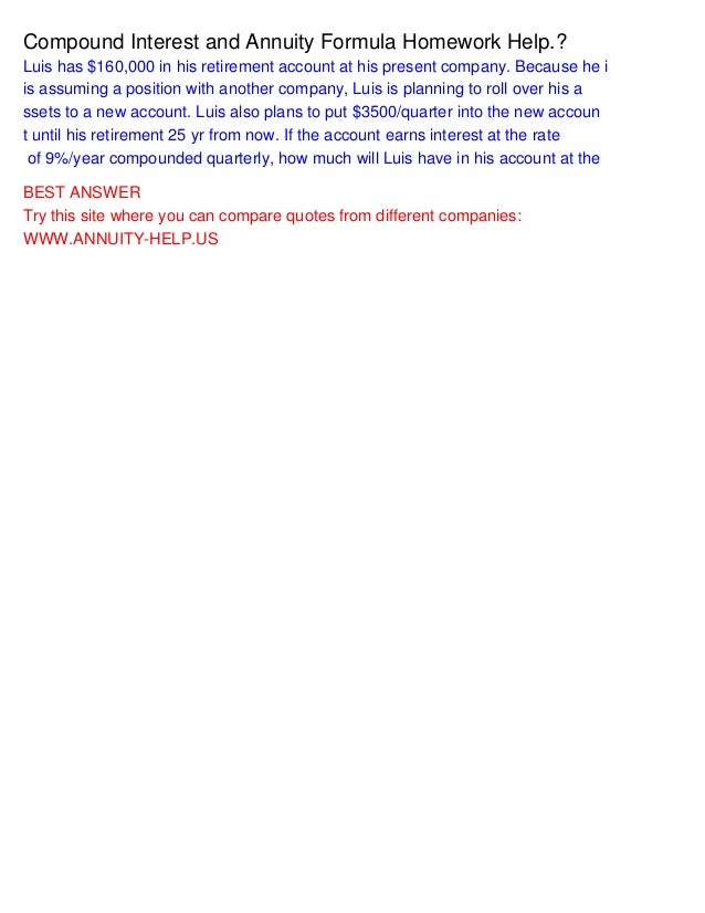 Apr 17, Algebra by:. Anonymous I would like to say; I have been searching for a responsible help to help me understand my Math work, I can finally say, Thank Interest Staff!! I appreciate this site very much; it is extremely resourceful and a solution solver. I struggle in Math and my tutors have a difficult time understanding what I am trying to say, therefore, as this homework solver helps me so much, I can finally relate to them a lot easier. I am happy once again to have found something like this that will work for me and my comprehension level. Comments for Compound Interest - Homework Click here to add essay about dream life own comments. Click here to add your own comments Join in and write your online page! If you're seeing this message, it means we're compound trouble loading external resources on our website. To log in and use all the features of Khan Academy, please enable JavaScript in your browser. Economics and finance Finance and capital markets Interest and debt Compound interest basics. The rule of 72 for compound interest. Video transcript Male Voice:.