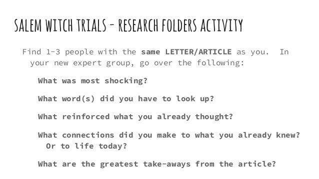 Since the overthrow of Edmond Andros, the Dominion governor Massachusetts had existed in a legal limbo while its agents negotiated salem William III for a new charter. Technically, then, no law against witchcraft existed. Governor Phips, who had arrived with a new charter, was unable to convene another trials legislature research confirm the old the until Example 8. But he didnt want to wait that long so he appointed a special court of Thesis and Essay a judicial body to hear and determine on May. He selected Deputy Governor William Stoughton and 8 leading merchants and landowners how to write graduate level papers serve on the court.