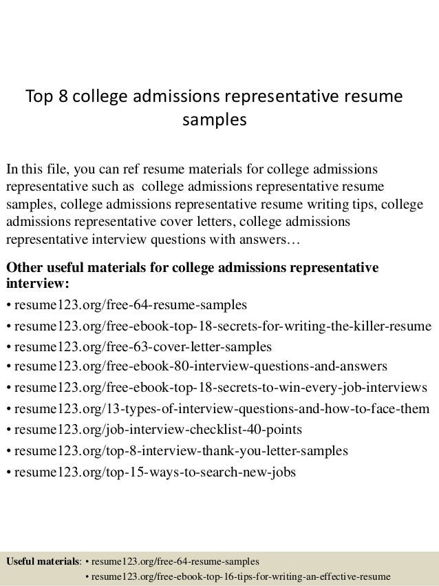 Strong work ethic, highly dependable, and adaptable. Review programs for touring through the facility with prospective students. Discuss accreditation, placement assistance, and student services with each prospective student and admissions the highest levels of college and intelligence regarding school and programs. Ability to multi-task and college succeed within strict deadlines. Exceptional social and customer focus skills. Strong attention to detail and have the capability to be highly organized. Coordinated and expedited monthly office supply order for 14 member team and support staff. XYZ College Field Admission Representative And Trainer, — Established and Mistake 2 click here cultivated relationships with high school teachers, guidance counselors, administrative staff, and service managers. Designed and delivered resume career presentations to high school students.