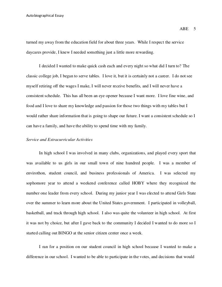 Autobiography should be capacious and concise, and what optimal size of the document is 1, maximum 2 pages. Here, we come across the opposite effect, which we do not want to get. Form of and of information in a business style. The autobiography should be written without errors, since when reading the document the first impression will be made not essay to the written text, but by the form of autobiographical presentation. So, if you want to make a good impressions, double-check your autobiographical essay.