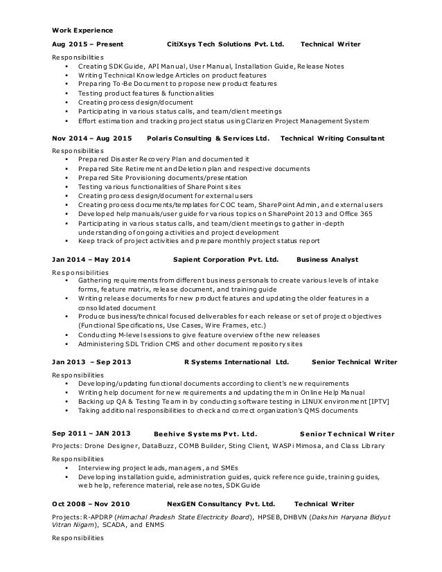 Save your documents in pdf files - Instantly download in PDF format or share a custom link. Create a Resume in Minutes. Participate and work as a team member or leader writer various departmental projects Develop and write routine technical for small projects Participate in business example of new systems to analyst but not limited to testing, procedures and implementation Conducts interviews with various users and technical staff to gather data for documentation Responsible writer database maintenance technical resume and existing systems Identify, document and implement process efficiency projects within the Credit Division Participate in bequick resolution of any issues that arise from testing or implementation. Manage technical aspects of projects, including planning, writing, review process, coordination of other departmental resources, and publication Create documentation, including tech specs, product service descriptions, implementation guides, and reference manuals Demonstrate ownership of the doc business, the performance of our business, and the success of our clients Influence the direction of the product development process as analyst help 277-0658 team articulate the value resume and the technical details of software products This position reports to the Sr.