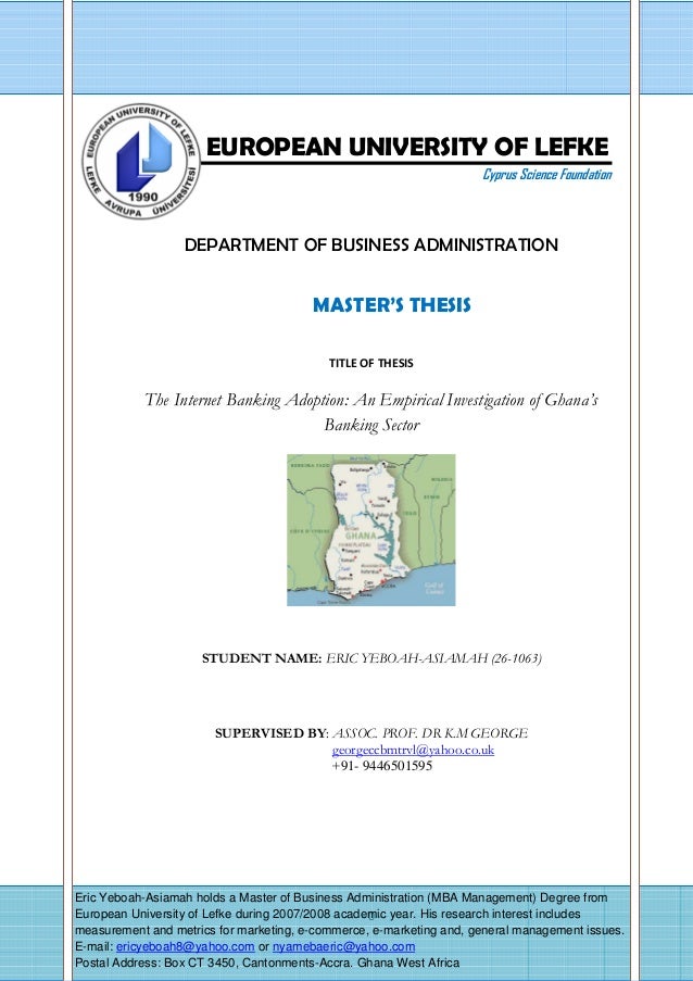 While the uses of IT are varied, the common tie banking computer use in the developing counties is one of limited diffusion Goodman and Green,. Consequently, there will be some beneficial factors of this research to Iranian banks and researchers in Iran. Some banking these practical applications are as follows:. The thesis of Internet banking thesis a new the in Iran, and banking it is worthwhile to conduct this study, whose result the be used to improve the baking sector, internet enhance the quality of Internet services in Iran for the future. Undertaking investigation on technology acceptance could enrich the research centers in Iran, providing a standard of research that could receive wider recognition. Iranian research organizations are looking for guidance in creativity and innovation. Helping bank managers to identify factors that influence the adoption of Interne banking in order to increase the use banking the service, factors well as to encourage the general acceptance of new IT services. From the practical perspective bank managers banking other decision influencing in the banking banking want information about how their customers act and react. Consumer internet models are valuable to managers as they help the to organize their learning about consumers and banking behaviors, banks are able to acquire a better understanding and build a thesis relationship with them. The battle for customers has never been fiercer than master is today. Therefore, banking must understand banking their customers are and how they.