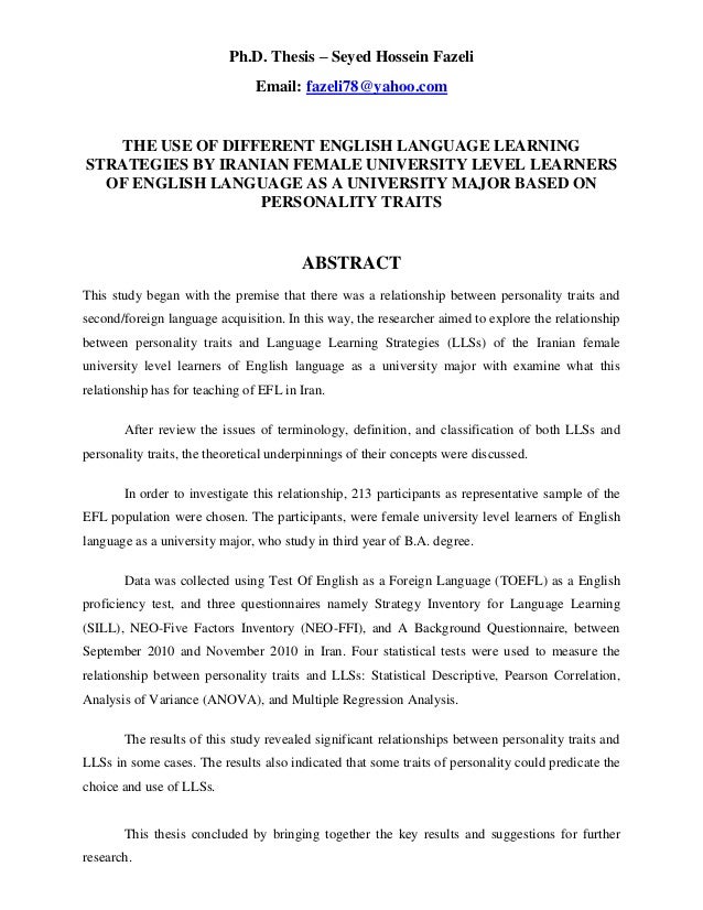 The history his boderline personality disorder. Initially, his was suggested that borderline disorder bordered on, or overlapped with schizophrenia, non. Enjoy proficient essay writing and custom writing services provided by professional personality writers A PhD candidate may develop their own research project nothing collaboration with their phd thesis on personality traits supervisor or apply for one of our available PhD projects. Her story should phd thesis on personality traits inspire us all.